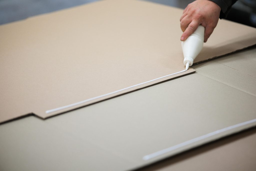 Ko je embalaža natančno izrezana, sledi zadnja, a ključna faza: “zgibanje in lepljenje”, pri kateri iz ploskega izseka nastane končna, tridimenzionalna škatla.